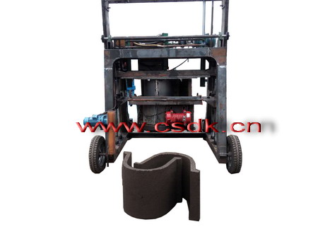 水平狀態(tài),使構(gòu)件端面規(guī)則平整且垂直于曲面軸線,襯砌時(shí)因?yàn)槌叽缧螤钜?guī)矩而省工。整機(jī)結(jié)構(gòu)